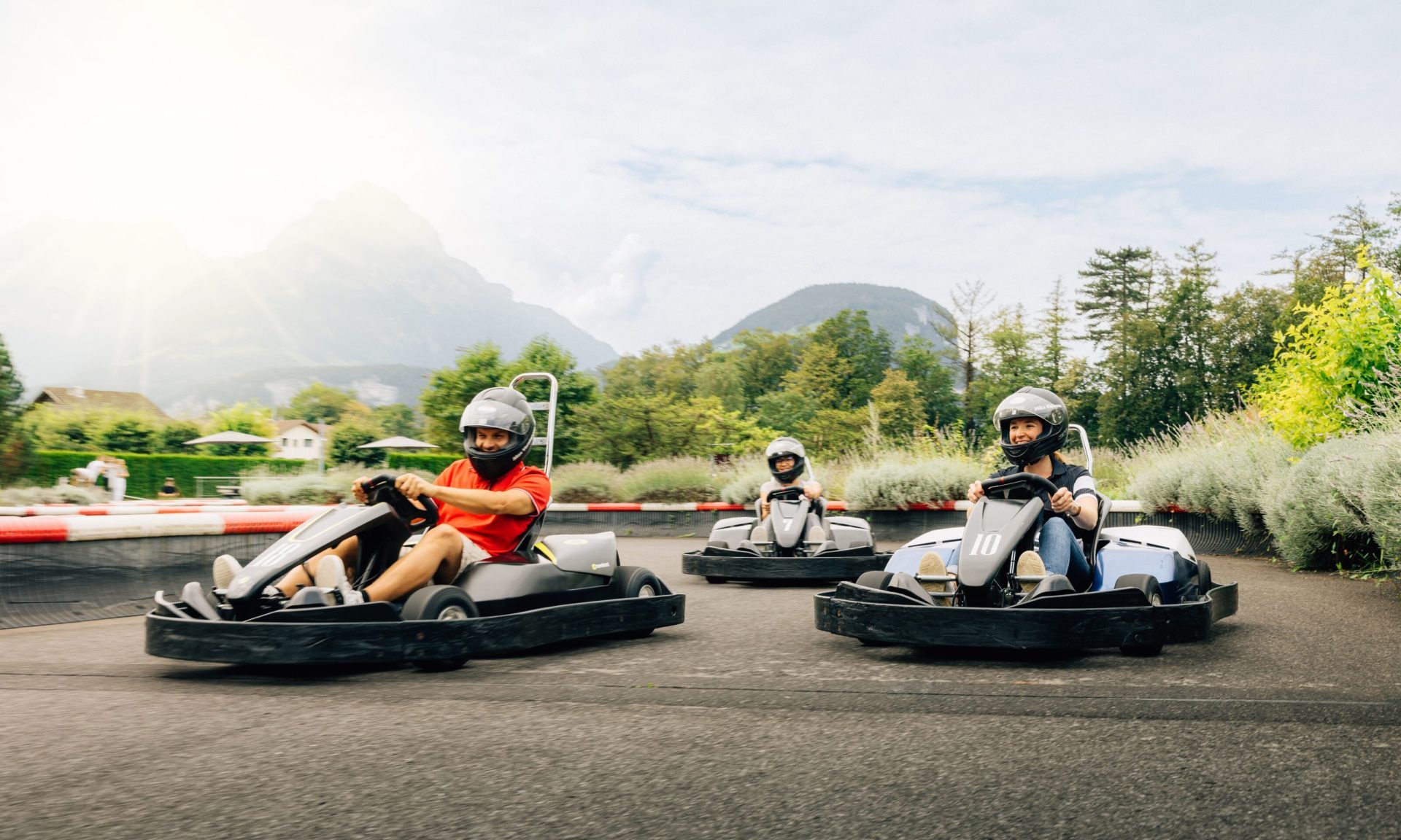 Geniessen Sie einen rasanten Nachmittag beim Gokart-Fahren mit Familie und Freunden. Oder buchen Sie die ganze Outdoor Kartbahn exklusiv und veranstalten Sie Ihr eigenes Rennen.