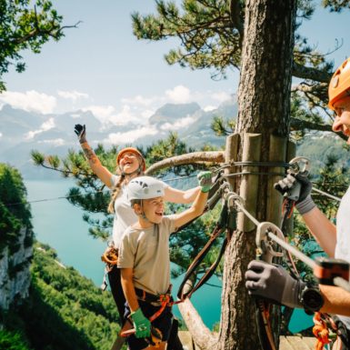 With the ultimate adrenaline rush, the largest family and leisure resort in Switzerland, the Swiss Holiday Park in Morschach, has a surprise for all guests who are 140 cm or taller: a rope slide high above Lake Lucerne.