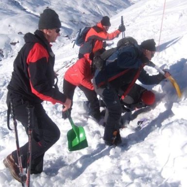 1st evening: complete personal avalanche equipment (avalanche transceiver, probe pole,