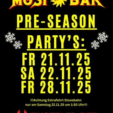 Informationen Freitag21.11.202515:00 Alle Termine Sa. 22.11.2025, 15:00Fr. 28.11.2025, 15:00 Mosi Bar6433 Stoos SZ 041 811 42 41 balmberg@bluewin.ch https://www.balmberg-stoos.ch/events.html Après-Ski