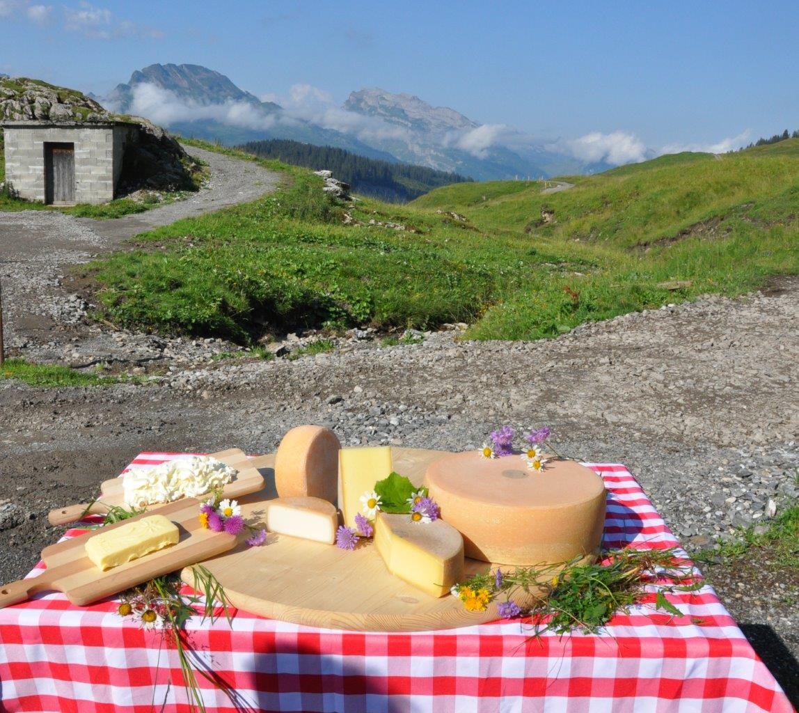 Alpwirtschaft Pragelpasshöhe Tisch mit Käse